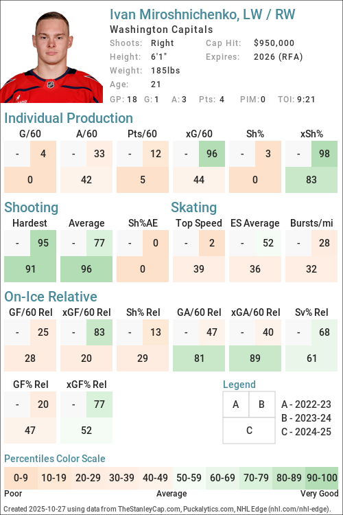 Ivan Miroshnichenko amid most important training camp yet for Capitals: ‘Big camp for Miro to prove he can be an effective everyday NHL player’ at Russian Machine Never Breaks (Sun Sep 21, 2025)