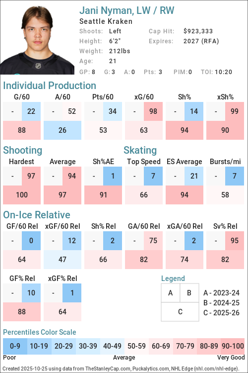 Jani Nyman is the Seattle Kraken's secret weapon at Kraken Chronicle (Tue Oct 7, 2025)
