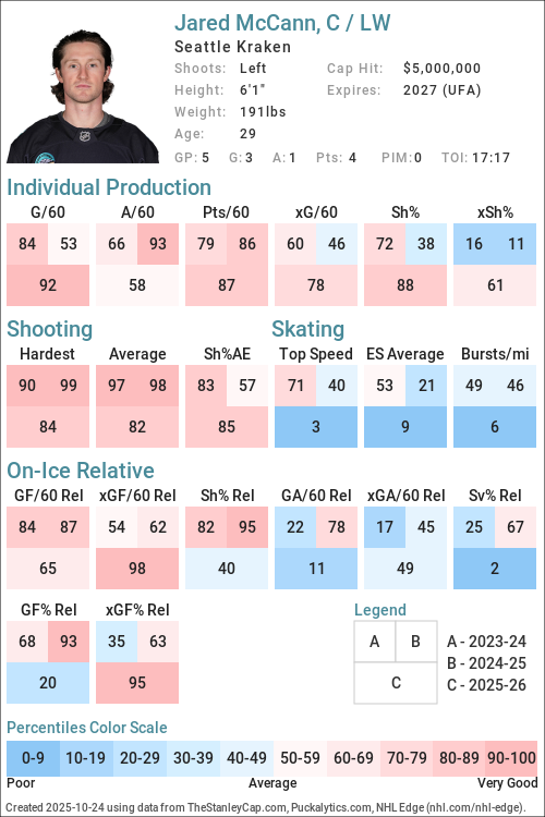 Kraken’s Jared McCann Records 400th NHL Point at The Hockey Writers (Sun Oct 12, 2025)