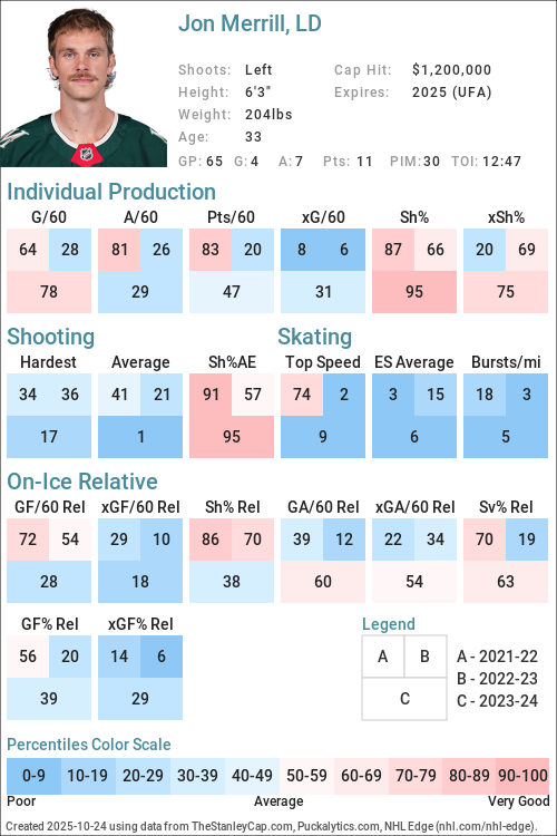 Percentiles are determined by comparing Forwards to Forwards and Defensemen to Defensemen.