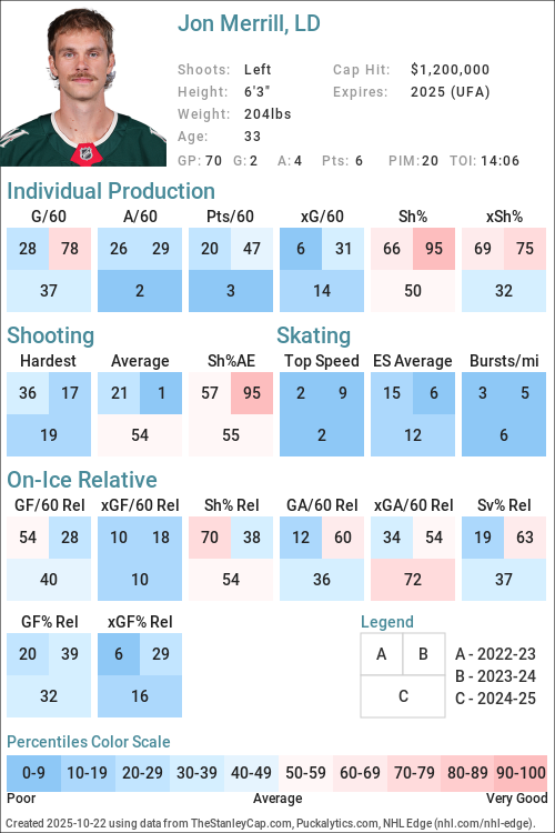 Bursts/mi are calculated from NHL Edge Data are are speed bursts above 20mpg per mile skated. The NHL doesn't adjust