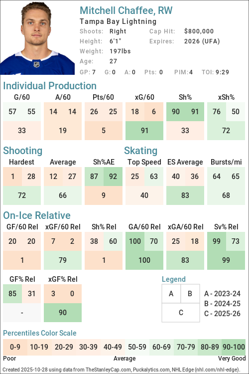 Lightning place Mitchell Chaffee on waivers at Raw Charge (Mon Oct 27, 2025)