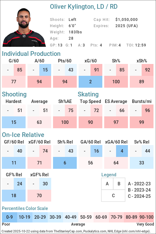 - Shooting and Skating (except Sh%AE) are from NHL Edge