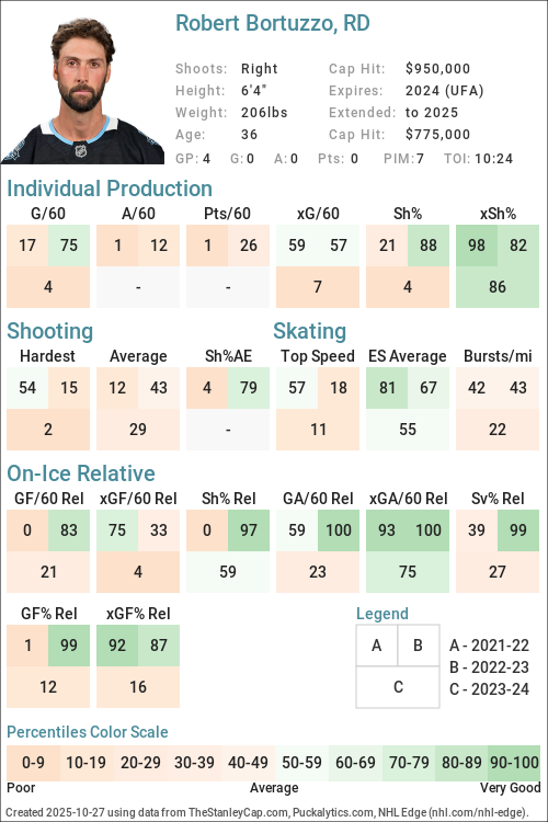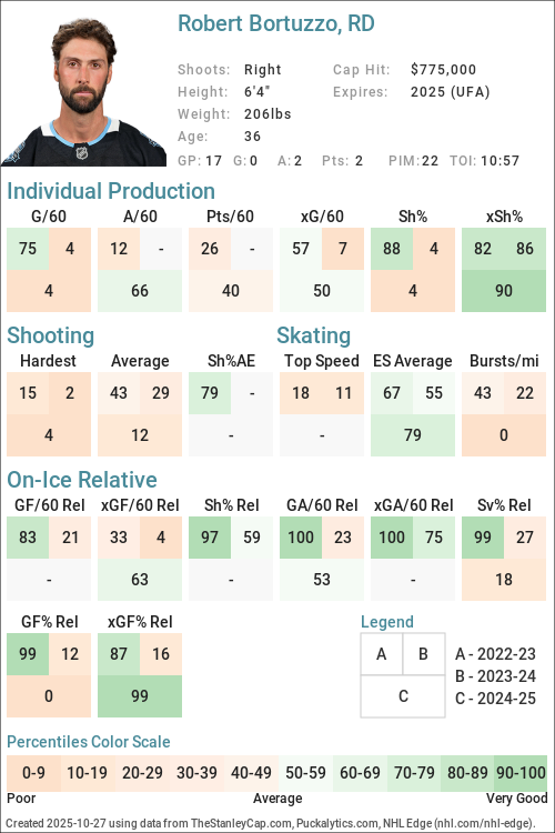 Percentiles are determined by comparing Forwards to Forwards and Defensemen to Defensemen.