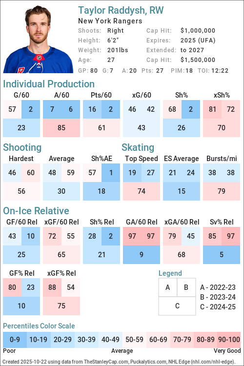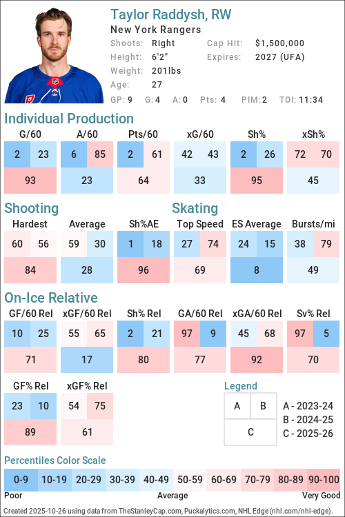 Taylor Raddysh’s breakout showing gives Rangers something to build on at Blue Line Station (Sat Oct 25, 2025)