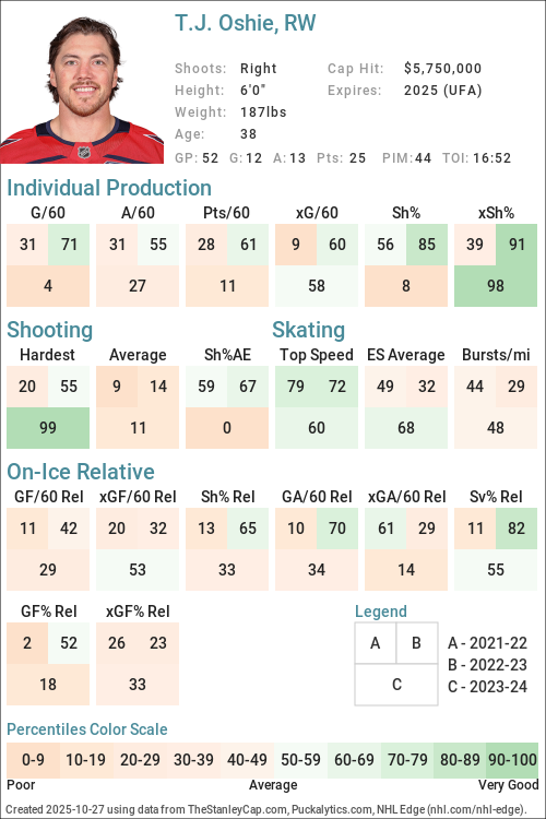 Percentiles are determined by comparing Forwards to Forwards and Defensemen to Defensemen.