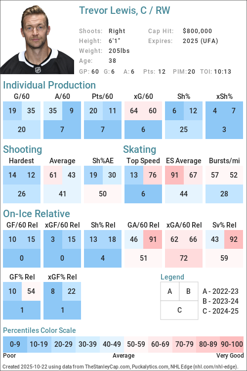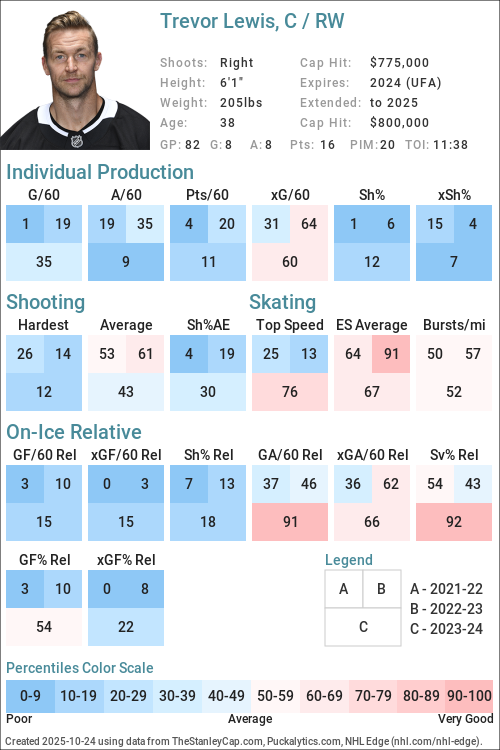 Percentiles are determined by comparing Forwards to Forwards and Defensemen to Defensemen.