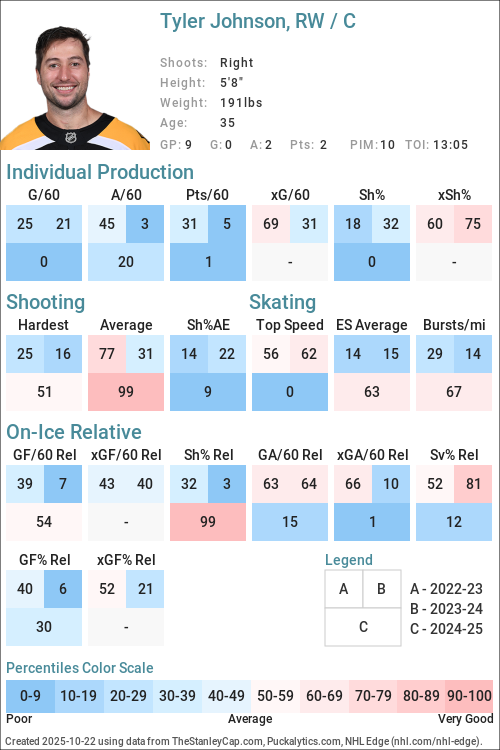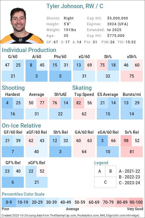 Percentiles are determined by comparing Forwards to Forwards and Defensemen to Defensemen.